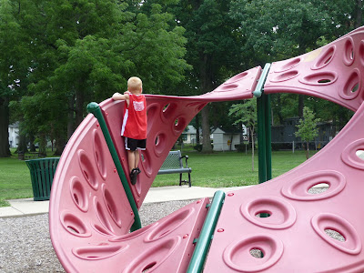 We visit a local park every so often that has this weird twisty-climby-holey thing for the kids. From my vantage point--the bench about 15 feet away--it seems to be a fairly difficult object for the children to figure out. Most of the kids I have witnessed get up, huff and puff, grunt, and huff and puff again before giving up and jumping to the ground to go and play on something that is actually fun and not work elsewhere.