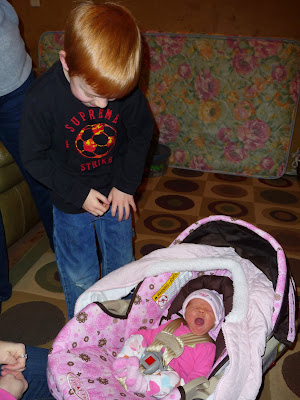 "Oh, my goodness....she's so tiny! Her head is the size of the orange Mason ate for breakfast this morning!"